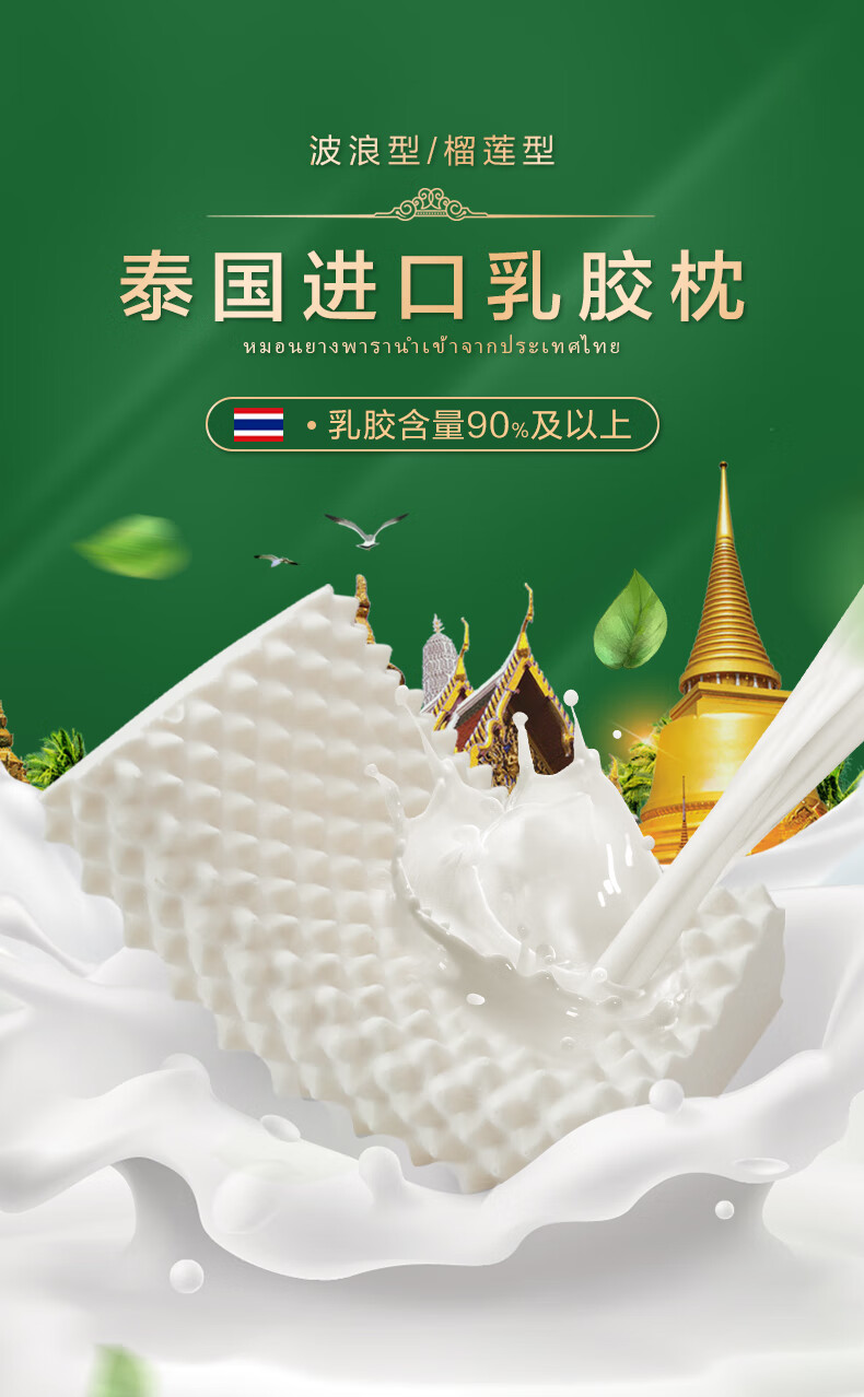 罗莱家纺 泰国乳胶枕天然乳胶橡胶枕抗菌防螨枕头枕芯中枕 单支装