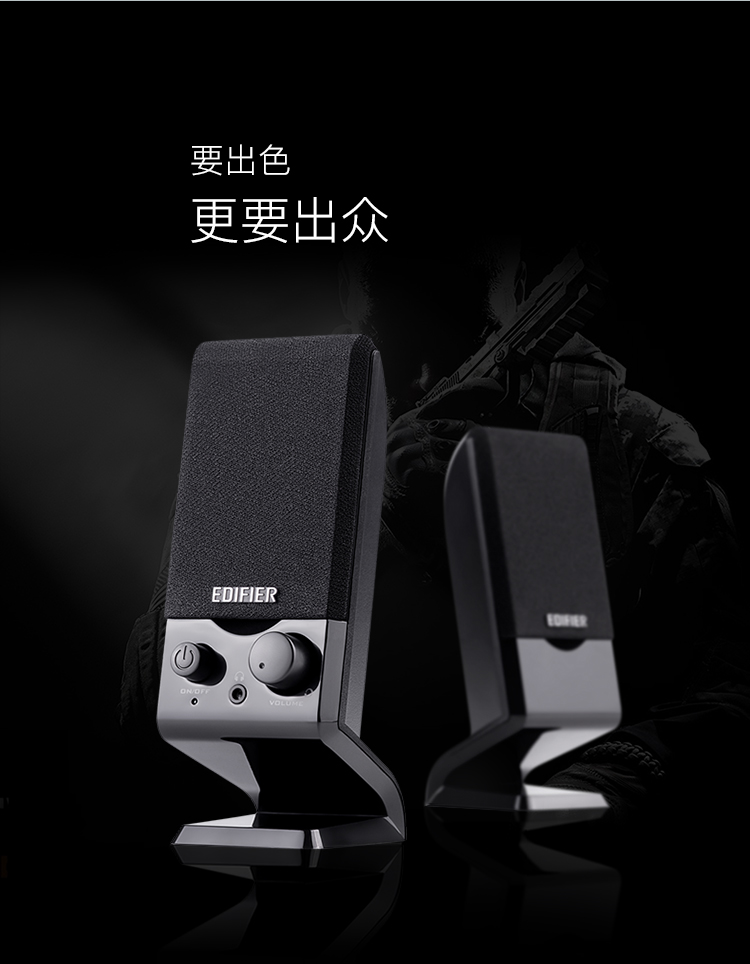 漫步者(EDIFIER) R10U 2.0声道电脑音响音箱 台式机笔记本桌面音响 黑色